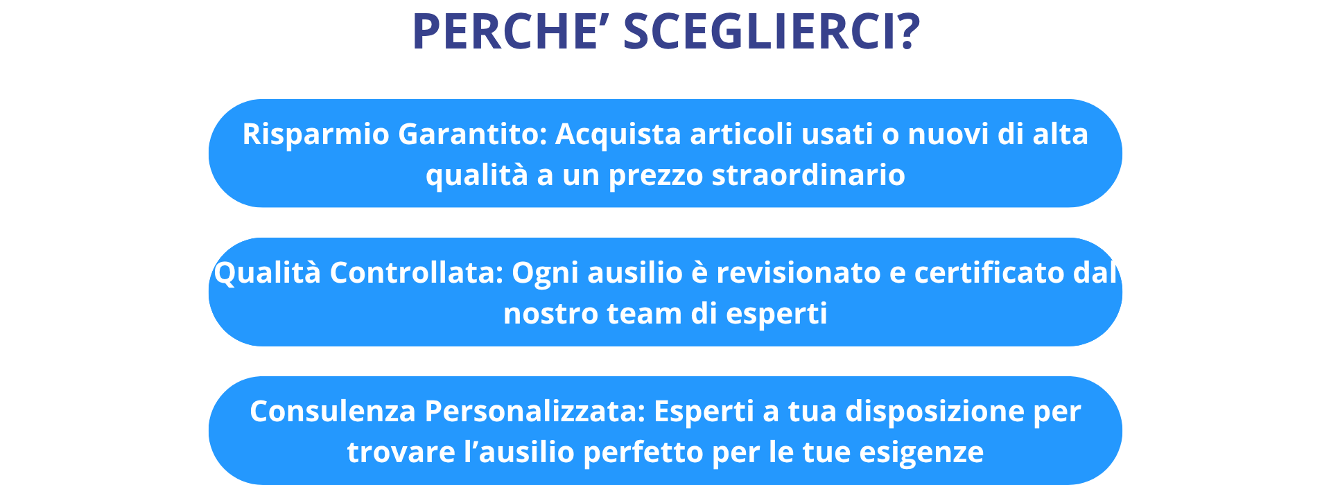 Potrai toccare con mano carrozzine, deambulatori e ausili di qualità, nuovi e usati, certificati dal nostro team di esperti, e ACQUISTARLI DIRETTAMENTE IN NEGOZIO A PREZZI SCONTATISSIMI!