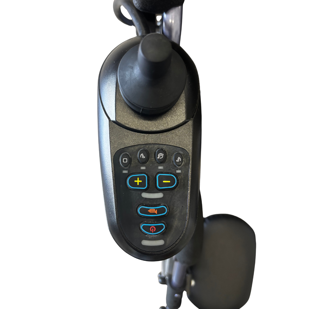 La carrozzina è dotata di un joystick elettrico intuitivo che gestisce direzione, velocità, schienale e pedane. Le ruote pneumatiche 4×4 garantiscono stabilità anche su superfici dissestate. Le batterie potenziate permettono fino a 25 km di autonomia, mentre i motori 2×250 W offrono una spinta costante e sicura. Inoltre, la seduta ergonomica da 43 cm e la capacità di carico fino a 135 kg assicurano comfort anche durante utilizzi prolungati.